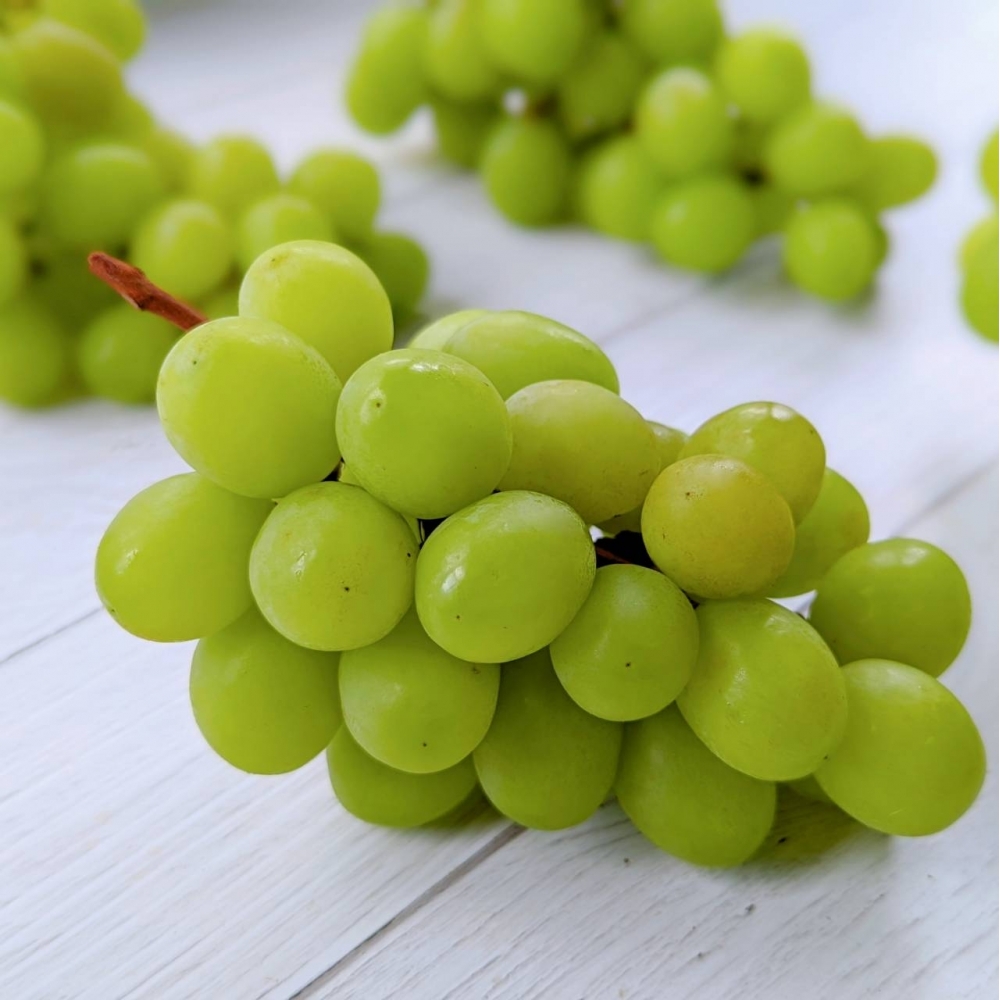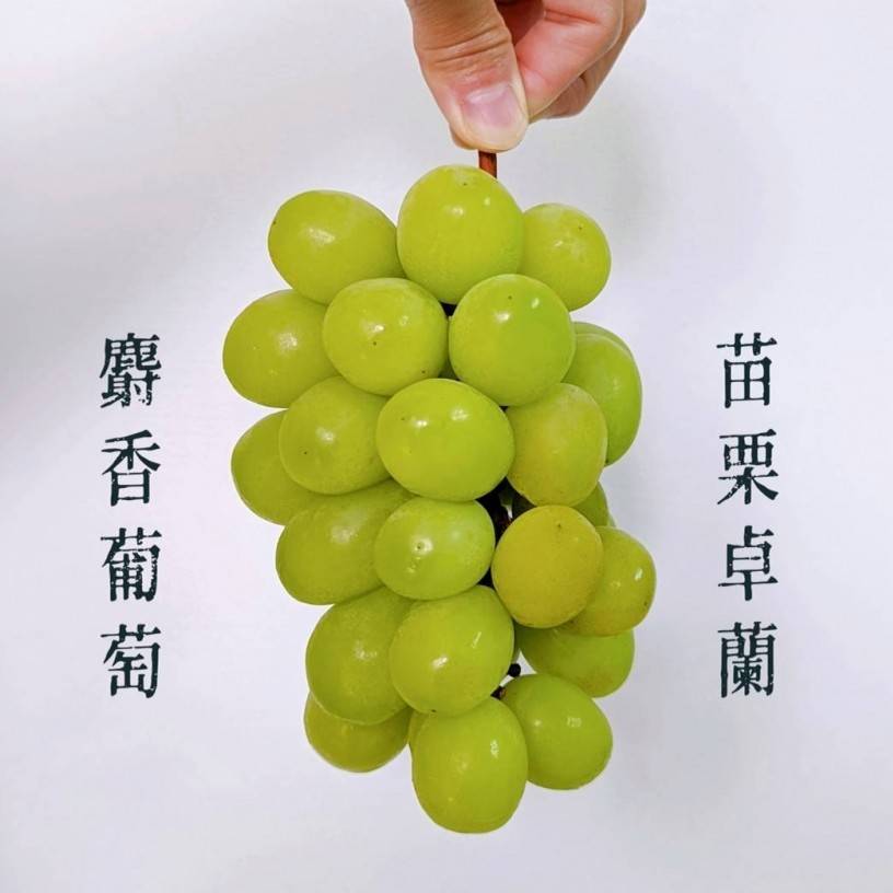 麝香葡萄 源自於日本,閃爍綠金的討喜外表、果實成串不易落果、果肉扎實脆口,果皮不澀、甜度高帶有荔枝花蜜的香氣與尾韻。