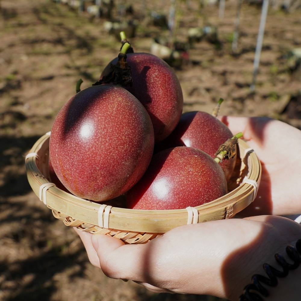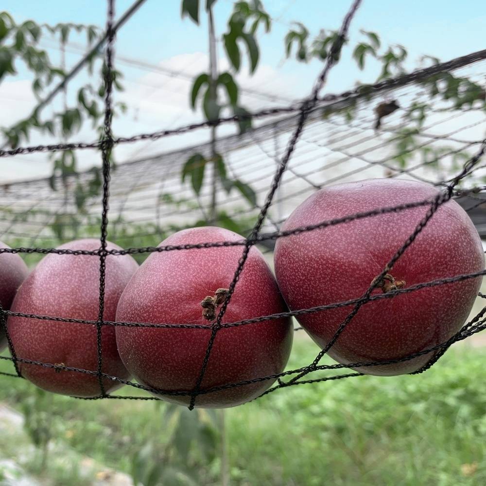 農友堅持草生栽培、施用有機肥與液肥灌養,種植出顆顆飽滿、渾圓的特級百香果。